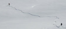 The "Grand Envers" is the most difficult route. The descent is very difficult and commited. The slopes are very sustained with a gradient 40 to 45 degrees. The fall is sometimes not envisageable and you must have a very good ski level with a perfect control of your turns. For only the best skiers.